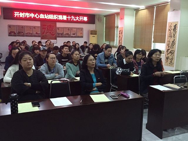 开封市中心血站组织集中观看 中国共产党第十九次全国代表大会开幕