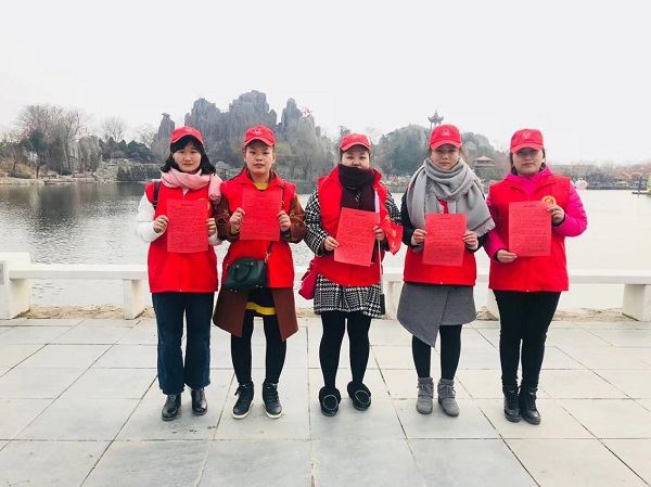 当天下午,血站巾帼志愿服务队来到开封市翰园碑林开展了文明旅游志愿服务活动。活动中,志愿者们统一穿着红马甲和小红帽,在公园门口,通过发放《文明旅游倡议书》向市民及游客普及文明旅游知识、倡导文明旅游,引导广大市民和游客遵守公共秩序、爱护公共环境和设施,杜绝大声喧哗、排队加塞、乱丢垃圾、乱折花草树木、乱涂乱画等不文明现象,引导游客自觉遵守文明旅游公约。