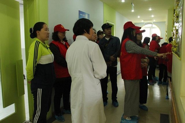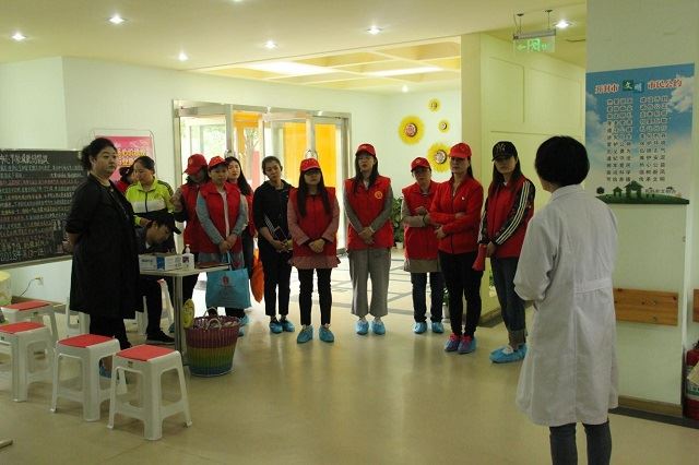 康复中心领导及工作人员对我们的到来表示衷心的感谢,并热情地接待了我们。中心办公室肖老师作为讲解员,带领我们参观和详细讲解了福利院的发展过程、发展前景以及孩子们的生活日常。参观中,我们看到这里的孩子们几乎都患有先天残疾,他们有的发育迟缓、有的唇颚裂、有的先心病、有的血友病等等。孩子们各有各的不幸,然而他们没有向命运低头,在保育员“妈妈”的关心照顾下,他们依然阳光幸福的生活着。看到我们的到来,孩子们的脸上都透露着天真可爱的笑容,还不停举起自己的小手,给窗外的我们打招呼。