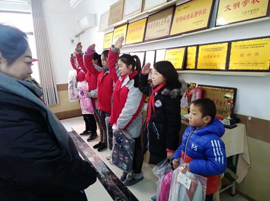 当孩子们接过书包的时候,脸上洋溢着幸福的笑容,不约而同的为志愿者们行少先队员礼,纷纷向志愿者们说谢谢。看着孩子们一张张冻的通红的小脸志愿者们感叹不已,留守儿童是当今社会弱势群体,他们的童年没有父母的陪伴,缺少关心、关爱。在这寒冷的冬日里,血站的一份爱心不仅给孩子们带来了暖暖爱意,更是成为他们成长道路上的助力。