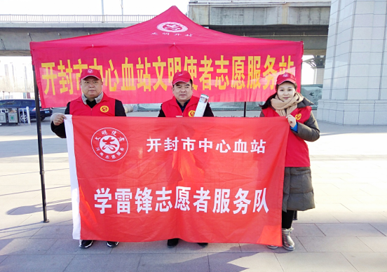 春运期间,车站归家旅客匆匆忙忙,血站志愿者在开封宋城车站协助旅客购票,指导他们怎样电子自助取票;在候车做文明引导,旅客都在志愿者的引导下自觉有序地排队等候,没有出现插队等不文明现象;在车站外搭建的志愿服务站为旅客提供出行咨询,照顾老幼及滞留旅客,并帮助有需要的旅客提拿行李和维持现场秩序;作为医疗卫生单位,血站还在志愿服务站准备了医用急救箱,以备急用,血站志愿者热情周到服务让旅客的归乡路温暖伴行。