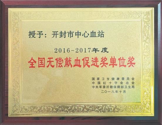 不久前,喜讯传来,在由国家卫健委、中国红十字会总会、中央军委后勤保障部卫生局联合表彰的全国无偿献血促进奖单位奖名单中,河南省仅有两家单位上榜,开封市中心血站榜上有名。
