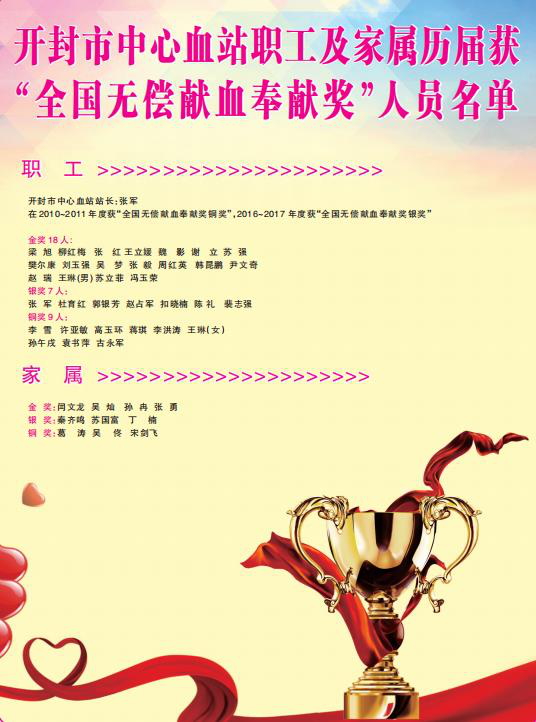 栉风沐雨,春华秋实。这些令世人瞩目的成绩也是对开封市中心血站职工胸怀大爱、执着公益、护佑生命、无私奉献的褒奖。
