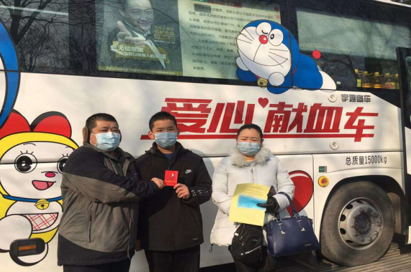 献血者郭琪,起了个大早携爱人和儿子一家三口前来奉献爱心,这已经是第25次参加无偿献血,共计9800毫升,也是疫情后第一次踏出家门。当我们的工作人员问他为什么在这个特殊时期献血,不害怕吗?他平静而真诚地说:“在非常时期用自己的方式为国家和社会做贡献,身为父亲也为孩子做做榜样。”一旁的儿子骄傲的竖起大拇指,说:“老爸真棒,老爸是英雄,等我长大了也要想您一样做个勇敢,有爱心的人。”