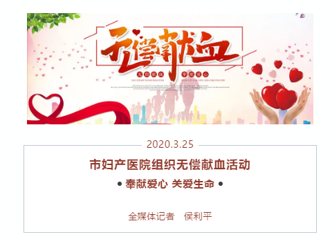 奉献爱心,关爱生命。市妇产医院医务人员在履行好救死扶伤的职责外,还积极承担社会责任,以另一种方式挽救更多的生命,为群众的健康贡献力量,为社会增添温暖。
