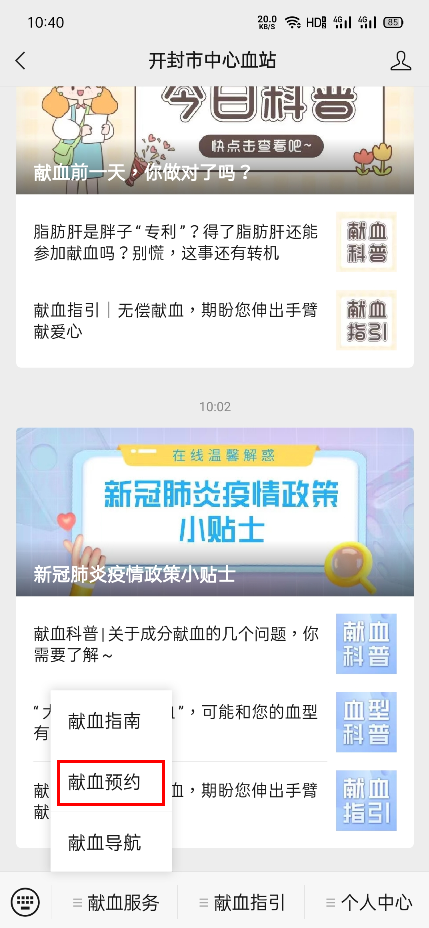 关注开封市中心血站微信公众号