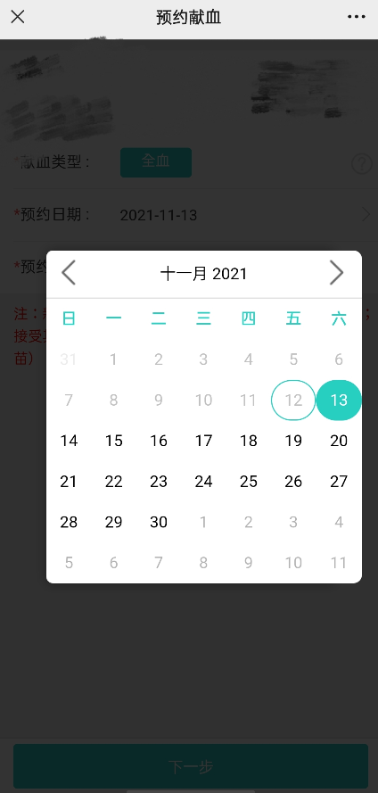 选择献血:日期、时间段、献血点