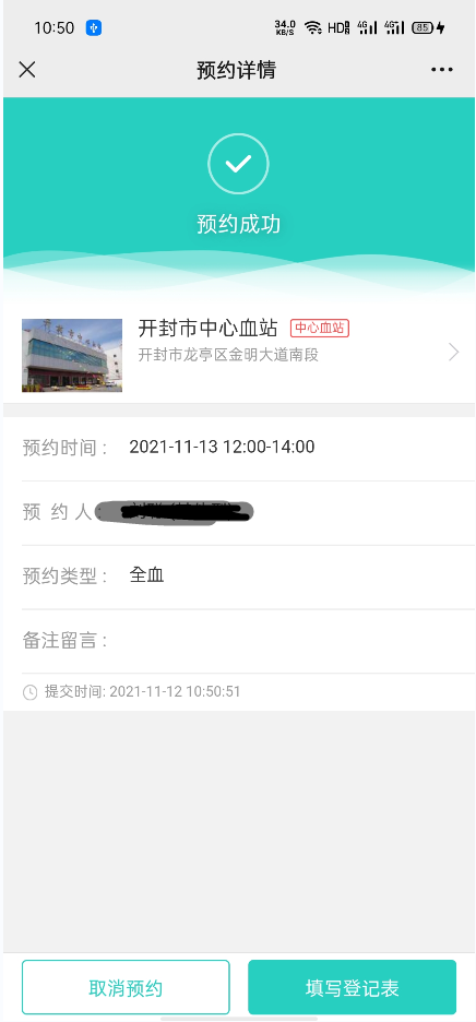 点击确定,预约成功