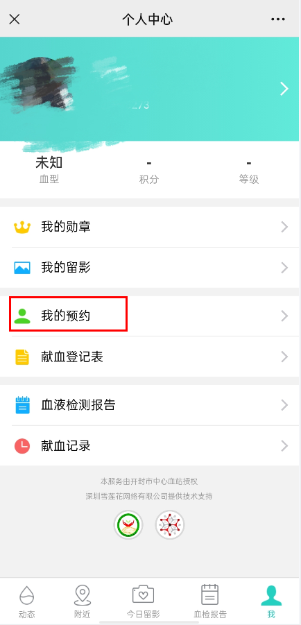 点击下方菜单栏“献血预约”