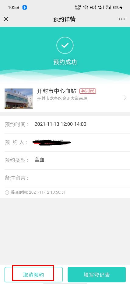 可以在预约献血栏