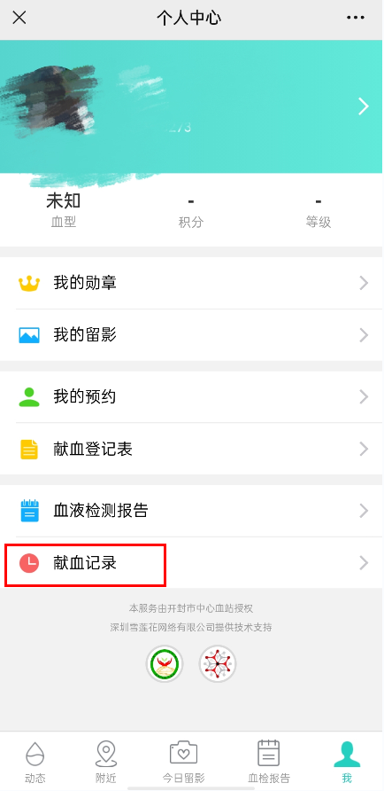 找到“献血记录”