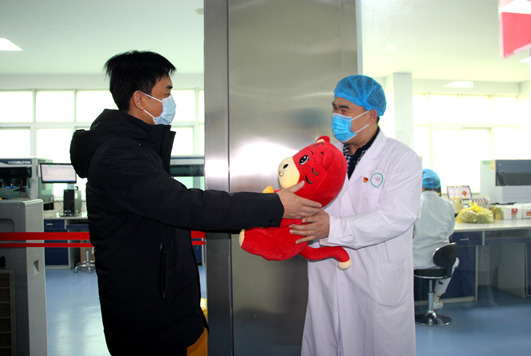 站领导心系一线职工,2月3日上午八点三十分钟党支部书记、站长李振东携领导班子一行来到站内,先后走访慰问体采科六辆采血车、采血大厅、成分科、检验科、贮发血科在岗职工。每到一处,李书记都与值班人员亲切交谈、嘘寒问暖,感谢他们春节期间坚守工作岗位不辞艰辛,向他们送上礼品并道上一声:“大家过年好,各位辛苦了!”。体采一科主任贾冰代表职工感慨道:“虽不能回家团聚,但感谢领导关爱,令我们在血站这个大家庭感受到浓浓的年味与家的温暖。”随后,李书记表示新的一年大家要以强烈的使命感和高度的责任心继续奋发工作,用优质的服务为全市采供血工作添砖加瓦,江河眷顾奋楫者,星光不负赶路人。一番振奋人心的鼓舞令中心血站坚守于采供血一线的干部职工充满了力量与决心。