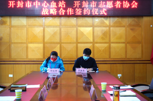 开封市中心血站、开封市志愿者协会双方领导友好签约中