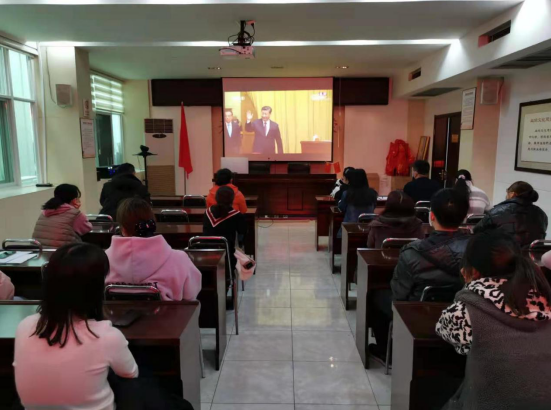 大会实况直播前,党员干部职工认真收看特别节目