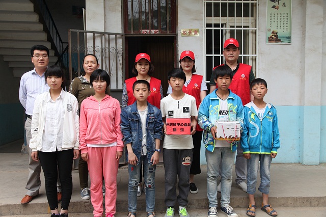 6月1日下午,血站副站长李贺带领党员志愿者前往杏花营中学,将精心挑选购买的《中国古典四大名著》、《曹文轩小说系列》两套文学书籍送到杏花营中学的孩子手中。李贺副站长亲切的叮嘱孩子:“要好好学习,天天向上”。孩子高兴地接过礼物,脸上露出腼腆的笑容,充满希望的眼神看着志愿者,坚定的说:“谢谢叔叔、阿姨,我会好好学习,将来做一名对社会有用的人”!