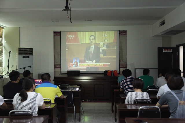 2016年7月1日上午10点,血站党支部组织19名党员干部在三楼大教室收看了“庆祝中国共产党成立95周年大会”的现场直播。到场党员干部认真听取了中共中央总书记、国家主席、中央军委主席习近平的重要讲话。
