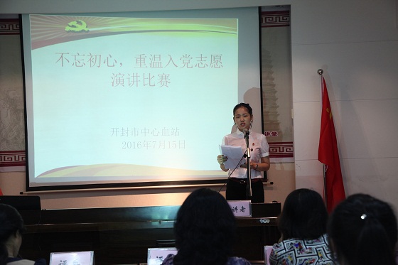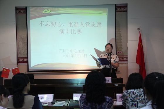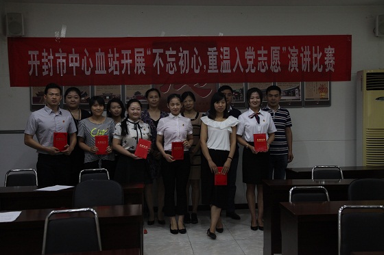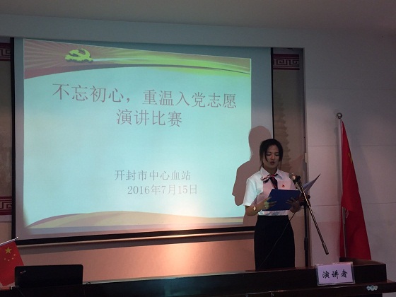 为引导广大党员自觉加强党性教育,增强党员意识,强化党性观念,进一步深化“两学一做”学习教育。根据《开封市中心血站关于在“两学一做”学习教育中以“不忘初心,重温入党志愿”为主题开展支部活动的通知》安排,血站积极组织全体党员以“不忘初心,重温入党志愿”为主题,紧密结合“学党章党规、学系列讲话,做合格党员”,自拟题目撰写文章,并从30余篇征文中选出典型事迹突出的优秀文章,认真开展“不忘初心,重温入党志愿”演讲比赛。