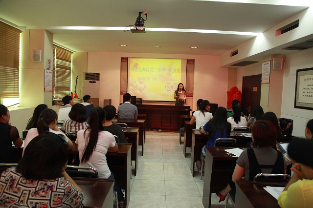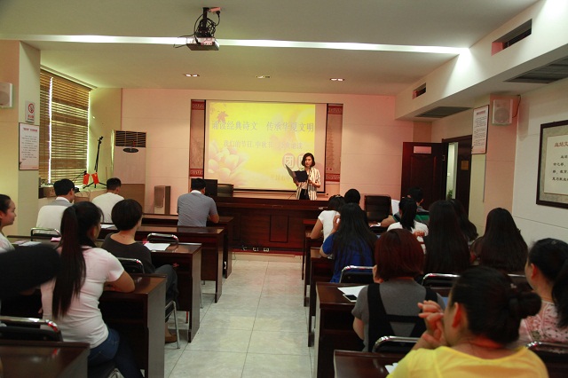 2016年9月13日下午,在优美古典的诵读声中,经典诵读活动在血站道德大讲堂拉开了序幕。大家欢聚一堂, 通过诵读爱祖国、爱家乡和团聚团圆的经典古诗词来传承华夏文明。诵读者精神饱满、抑扬顿挫、声情并茂的为在座观众诵读经典诗文,现场洋溢着浓郁的诗意氛围,赢得观众热烈的掌声。用诵读经典诗词这一形式传播爱国思乡、欢乐团圆、互助友爱的文化理念,弘扬中华民族传统美德,感受中华五千年悠久历史孕育出的底蕴深厚的民族文化。