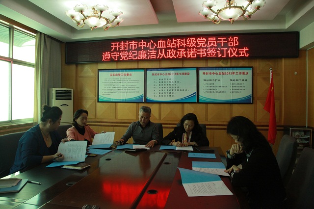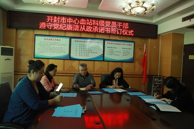 第三十五期:开封市中心血站科级党员干部 举行遵守党纪廉洁从政承诺书签订