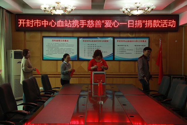 在血站党支部的呼吁下,各科室积极行动,全站党员干部职工纷纷解囊捐助,短短一天时间,大家你100,我50,他20的捐出了自己的一份爱心,全站共筹善款6000余元。2016年10月28日上午,血站三楼大会议室举行了携手慈善“爱心一日捐”捐款仪式。血站职工的积极参与为促进慈善事业发展、构建和谐社会贡献一份力量。