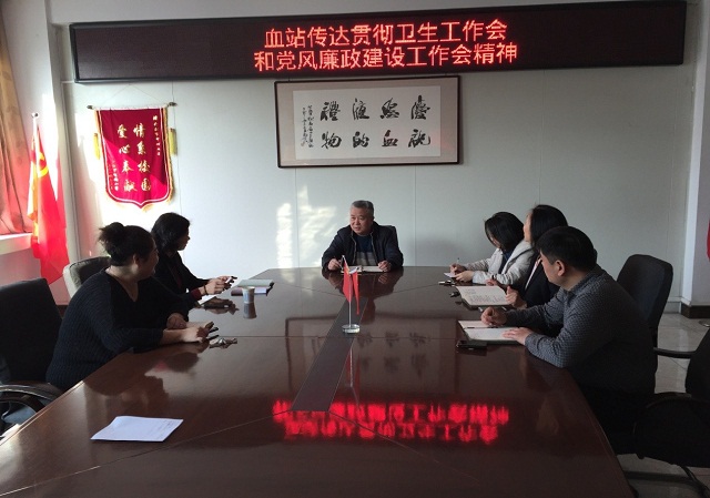 2017年2月27日上午,血站组织召开班子会,重点传达2月24日市卫计系统卫生工作会和党风廉政建设工作会精神,安排部署2017年血站采供血业务工作和党风廉政建设工作,提出工作要求。6名班子成员全部到会,站长张军主持并做重要发言。