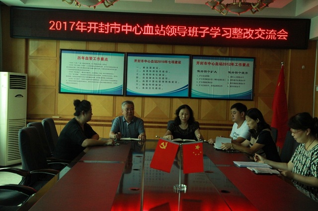 2017年8月15日上午,血站三楼大会议室召开“中心血站领导班子学习整改交流会”。会议由书记、站长张军主持,4名班子成员参加会议,会议主要针对以案促改前一阶段案例学习及第二阶段剖析查摆出的问题进行学习整改交流。