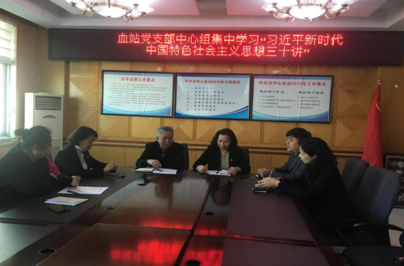 2019年2月20日血站领导班子召开民主生活会前进行“习近平新时代中国特色社会主义思想三十讲”学习