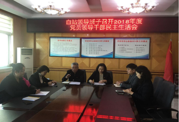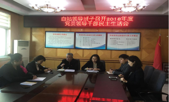 2019年2月20日上午,血站三楼大会议室召开了2018年度党员领导干部民主生活会,会议由血站书记、站长张军主持,其余5名班子成员参加会议,会议共进行5项内容,紧紧围绕思想政治、精神状态和工作作风3个方面内容进行自我剖析和批评与自我批评。