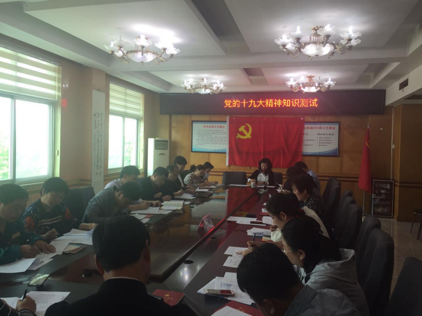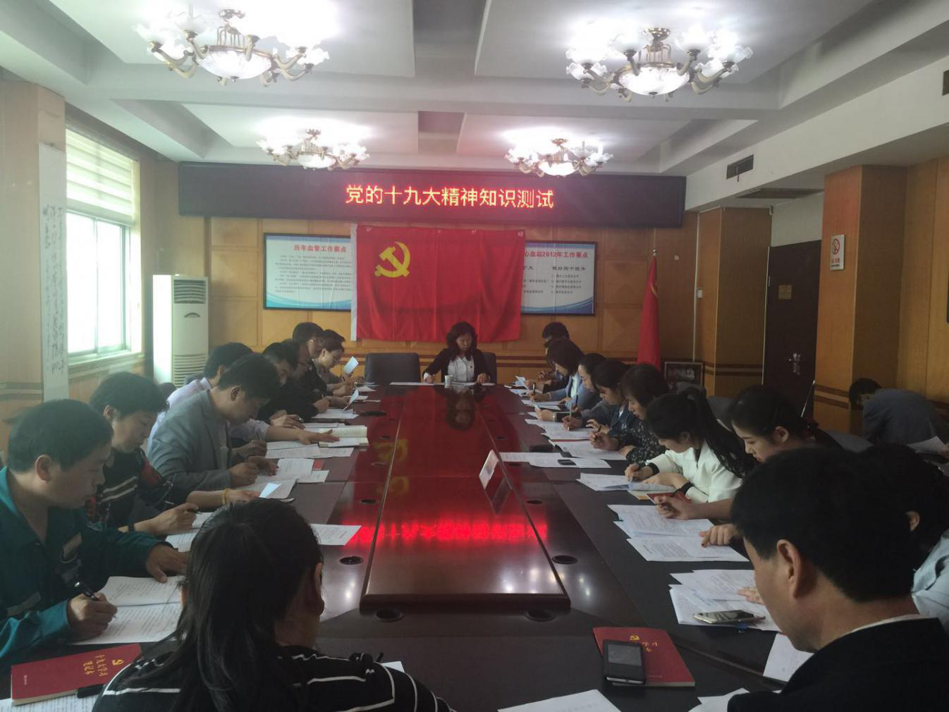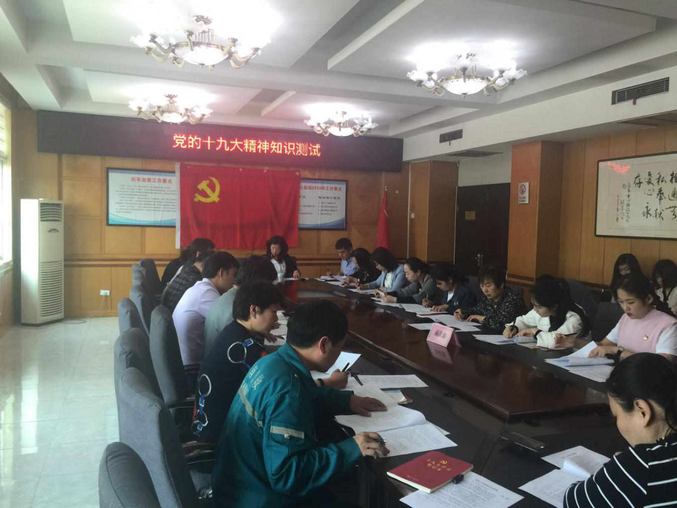 为检验和巩固全体党员深入学习宣传贯彻党的十九大精神的成果,2019年5月8日下午,血站党支部在三楼大会议室举行了“党的十九大精神知识测试”,30名党员参加测试。