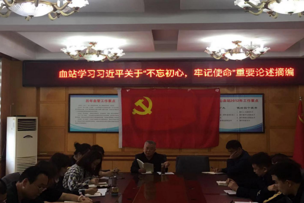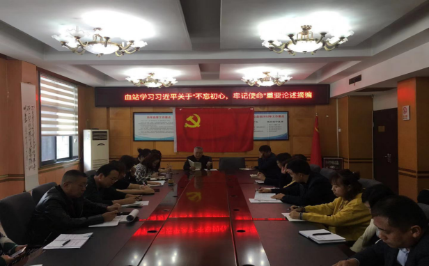 2019年10月14日,血站党支部召开工作会议,会前专题学习了《习近平关于“不忘初心,牢记使命”论述摘编》。会议由书记、站长张军主持,25名党员领导干部参加。