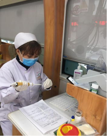 章蕾,开封市中心血站体采一科的组长,也是我们血站的一线医护人员。在这次新型冠状病毒感染的肺炎疫情防控时期,她毅然的冲在采血第一线,安全采血成为了她最重要的工作目标。每天早上采血车出发前,她都认真的给小组成员讲解防护的相关知识,在到达市区或各县区采血点时,对前来献血的每一位献血者进行详细的体检、仔细征询、测量体温、填写表格成了每天不变的工作流程,认真负责的对待每一位献血者,用自己的专业来赢取每一位献血者的信任和支持。