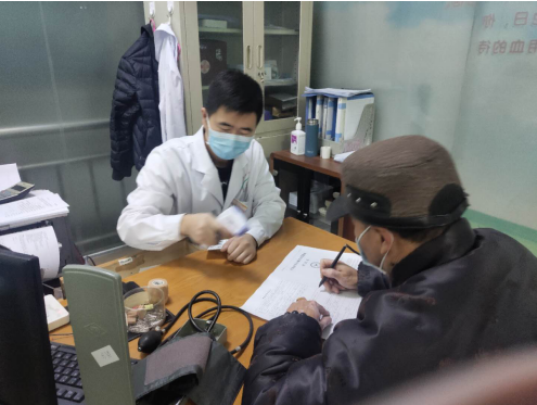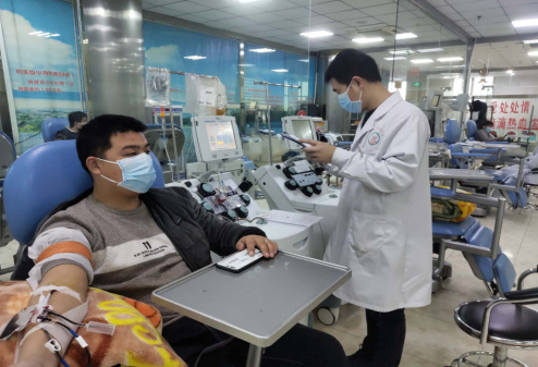 邢川阳在为献血者做体检征询
