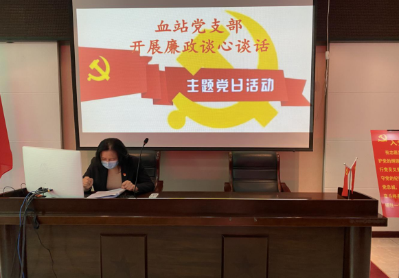 2021年1月7日,血站党支部利用“5+N”主题党日活动,党支部副书记闻武给全体党员做了深刻的廉政集中谈心谈话。副书记闻武强调,作为党员领导干部要把党风廉政建设工作放在第一位,贯彻落实全面从严治党主体责任和“一岗双责”强化宗旨意识,管的好自己,以身作则,坚持民主集中制,不搞一言堂,虚心接受群众监督,时刻提高警惕,坚定理想信念,严格要求自己。将廉洁从政作为一切工作的抓手,做好、做实,为广大职工树牢榜样。