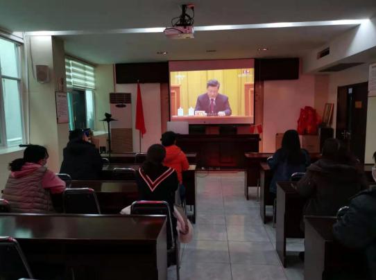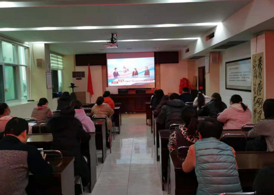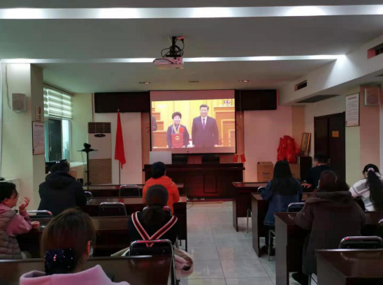 大会实况直播前,党员干部职工认真收看特别节目