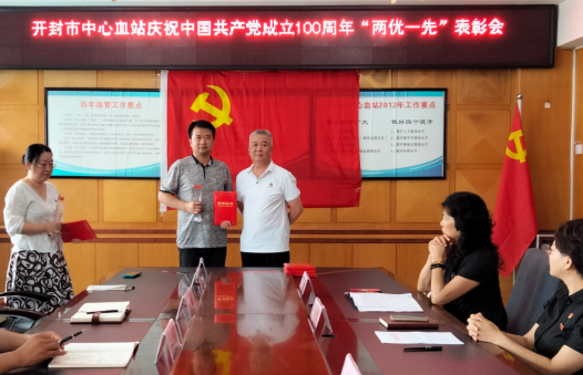 血站召开庆祝 中国共产党成立100周年“两优一先”表彰会