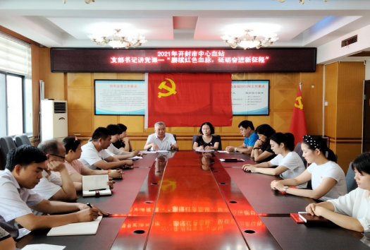 2021年7月1日上午,血站党支部书记张军以“赓续红色血脉,砥砺奋进新征程”为题,为全体党员讲党课,站班子成员和党员32人参加学习。此次党课的目的是要通过党史学习教育和今天的党课学习,让党员干部不忘初心、牢记使命,传承红色基因,赓续红色血脉,用党的奋斗历程和伟大成就鼓舞斗志、指引方向,用党的光荣传统和优良作风坚定信念、凝聚力量,用党的历史经验和实践创造启迪智慧、砥砺品格,争当新时代中国特色社会主义事业的建设者、捍卫者,在开启全面建设社会主义现代化开封的新征程中奋勇前进,努力为我市采供血事业发展再立新功。